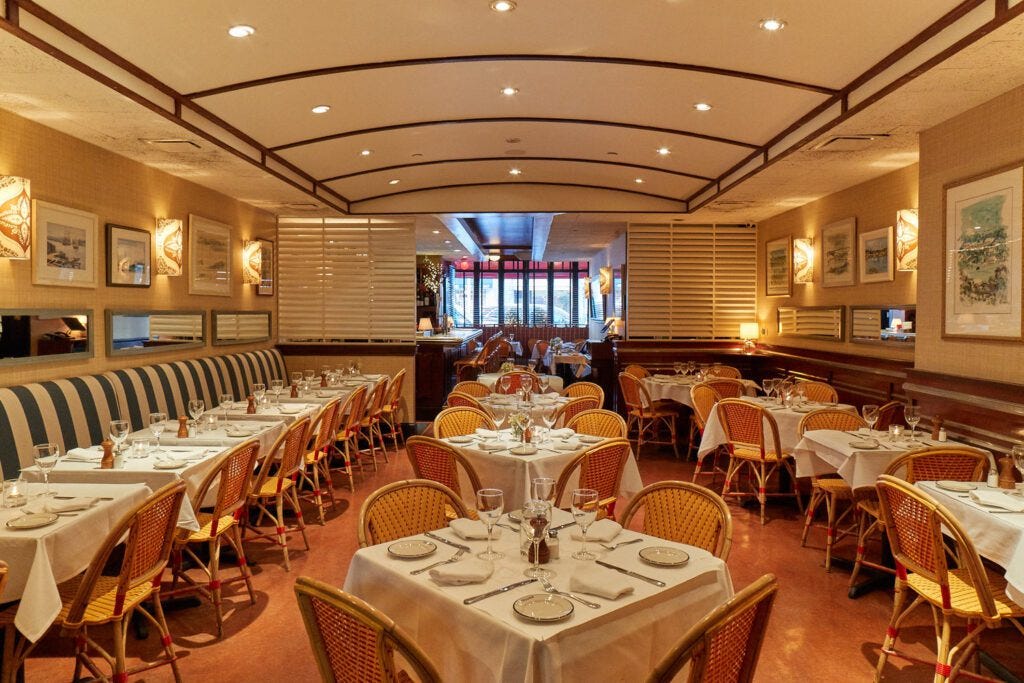 Island (93rd Street) – There’s something about this restaurant that makes me want to be a denizen of Carnegie Hill and descend from my high-ceilinged apartment every night to sip Sancerre and eat bland food amidst the regulars at the mosaic-tiled bar or green-and-white-striped banquette surrounded by paintings of classic yachts and schooners.
